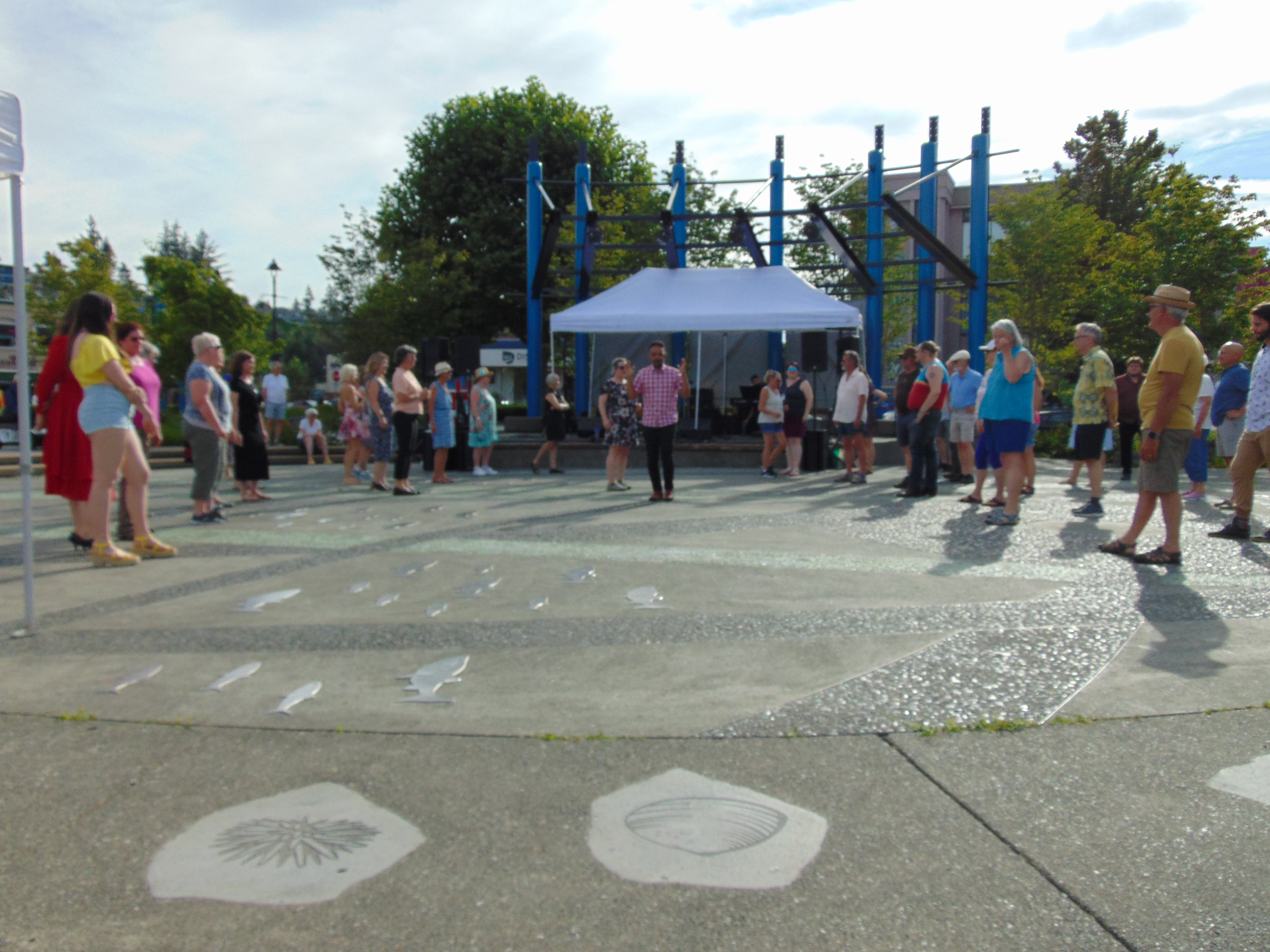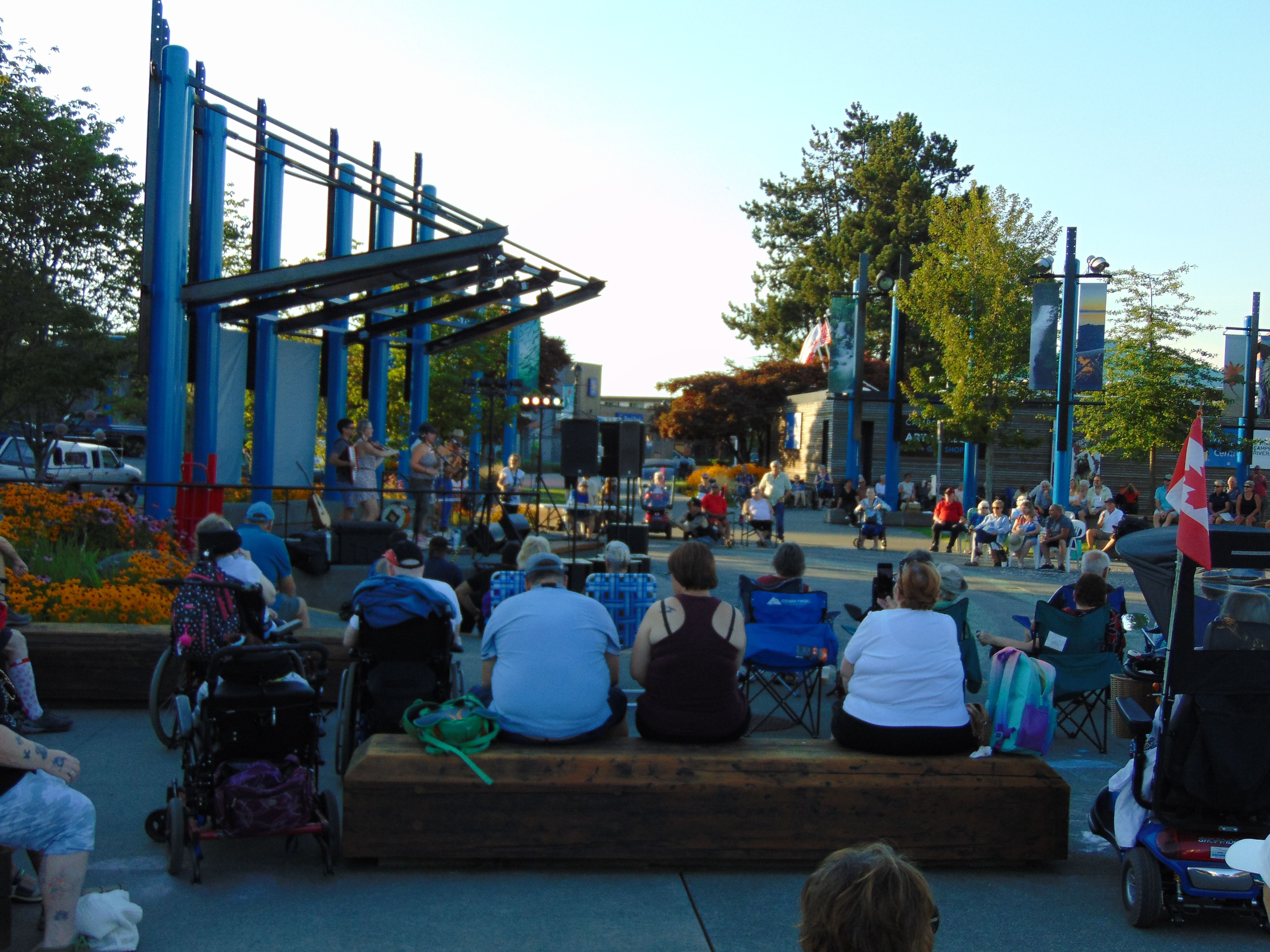 Spirit Square opened in December 2009, with funding from the Province of British Columbia, the City of Campbell River, and the Island Coastal Economic Trust, just in time to celebrate the Cross-Canada Olympic torch relay. In Campbell River’s town centre, Spirit Square is a space for public performances, presentations, and community gatherings.